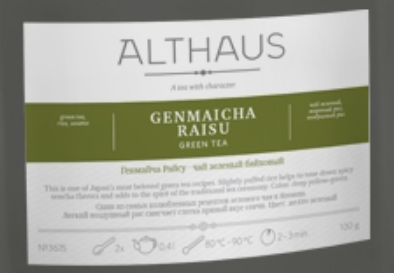 Althaus чай Genmaicha Raisu зеленый байховый ,100 г.