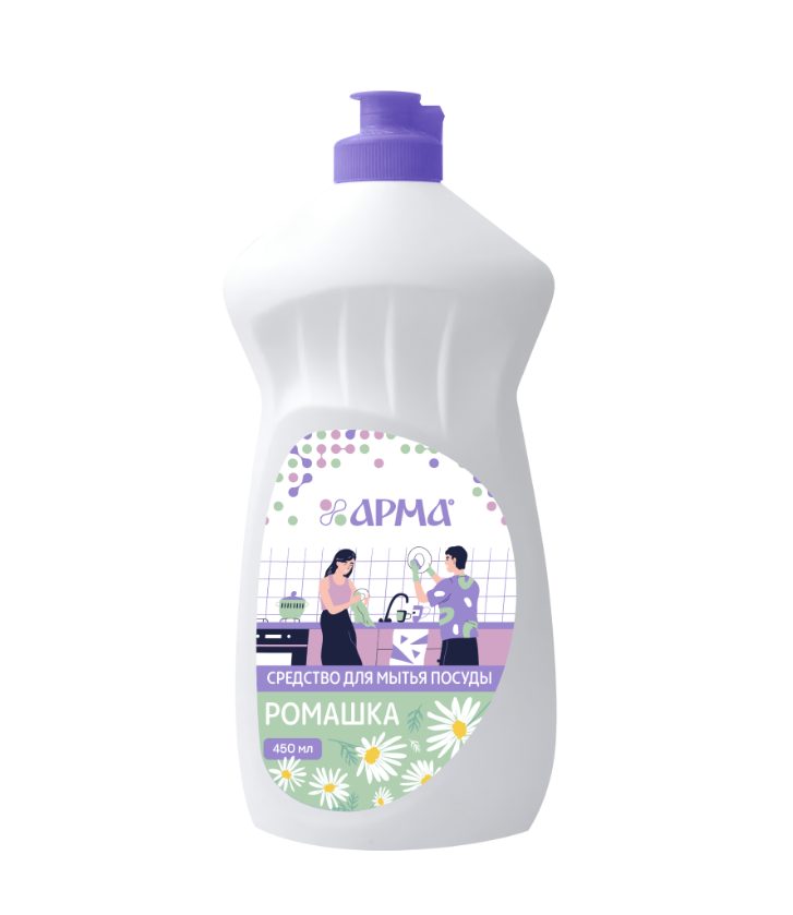 Средство для посуды "Арма" с экстрактом ромашки подходит для мытья всех видов посуды (в том числе детской), кухонного инвентаря и детских игрушек от любых видов загрязнений. Благодаря эффективной формуле образуется плотная пена, которая легко удаляет жир и остатки пищи с поверхности любого типа посуды, столовых приборов и рабочих поверхностей как в горячей, так и в холодной воде. Полностью смывается водой. Экстракт ромашки бережно воздействует на кожу рук. Чистящее средство не содержит перкарбоната натрия, магния цитрата, фосфатов и хлора. Моющее средство предназначено для ручного мытья посуды и столовых приборов. Не для посудомоечных машин.