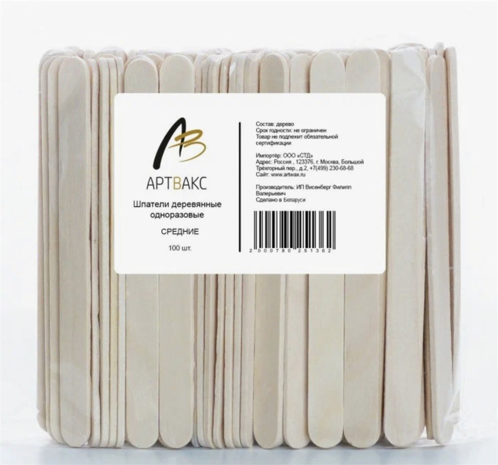 Артвакс Шпатели деревянные средние 114*10, 100шт/упк