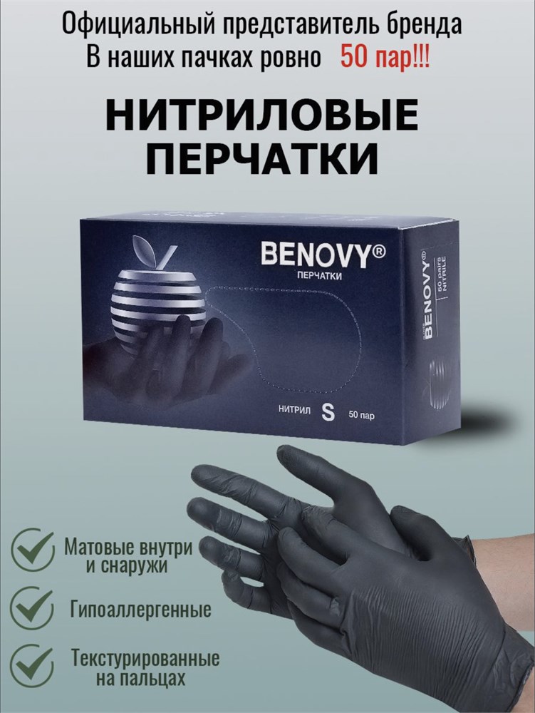 BENOVY Q Перчатки неопудренные, нитрил, S, Черный 100 шт.