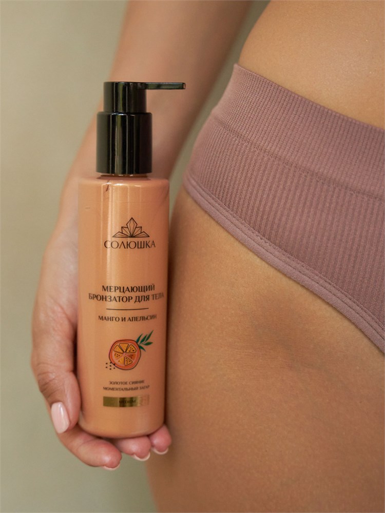 Бронзатор мерцающий для тела МАНГО и АПЕЛЬСИН (Солюшка), 200 мл