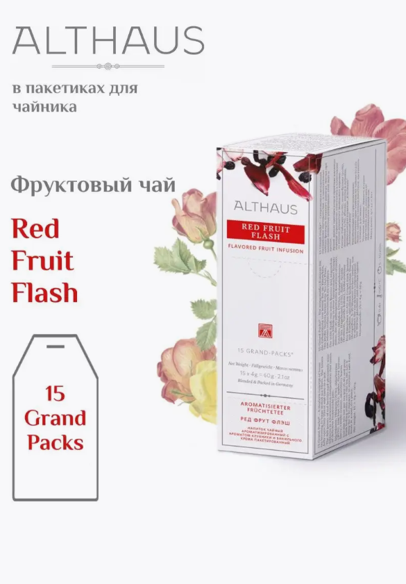 Чай Althaus Red Fruit Flash, чайный напиток с ароматом ягод для чайника, 15x4г