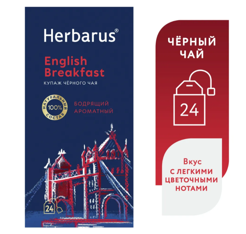 English Breakfast или Английский завтрак-это чайный купаж, состоящий из нескольких сортов черного чая, которые выращены в разных странах мира. Купаж из благородных сортов Цейлона, Ассама и Кении-воплощение истинно Английского чая высочайшего качества. Свежесть Цейлона, терпкость Ассама и нежность Кении сплетаются в аристократическом букете. Вкус утонченный, с легкими цветочными нотами и долгим послевкусием. Яркий настой с красновато-медовыми оттенками. В этом чае находит свое отражение терпкий вкус классического черного чая, дополненный нежными цветочными нотами, делающими его аромат еще более богатым и утонченным. Позвольте себе почувствовать роскошь настоящего английского чая в каждой чашке и насладитесь моментом, который превратит обычное утро в королевский завтрак. При изготовлении пакетированного чая используется то же сырье, что и при изготовлении листового чая.Herbarus-это широкий ассортимент чая, от классических сортов до эксклюзивных купажей, авторских фруктовых и травяных миксов.