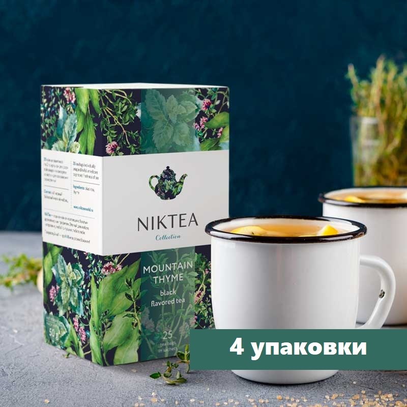 Чай Nikteа Mountain Thyme Горный Чабрец, черный с чабрецом пакетированный, 25 пакетиков 4 упаковки