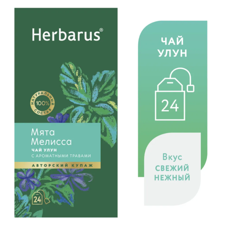 Чай улун с добавками в пакетиках Herbarus "Мята Мелисса", 24 шт.