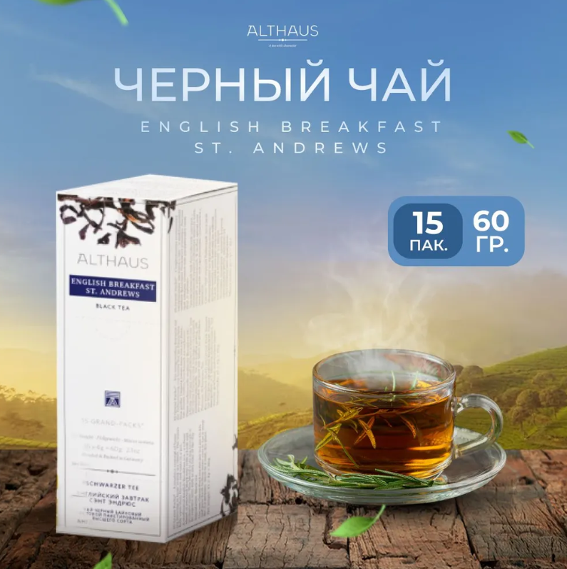 Чай является одним из самых популярных напитков в мире. Он имеет множество разновидностей, вкусов и ароматов. Одним из самых популярных сортов чая является черный чай. Он имеет насыщенный вкус и аромат, который бодрит и согревает в холодное время года. Один из таких сортов - Althaus English Breakfast St. Andrews.