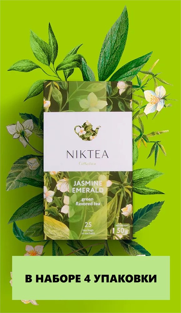 Чай зеленый Niktea Жасмин Эмеральд в пакетиках 25 шт 50 г 4 упаковки