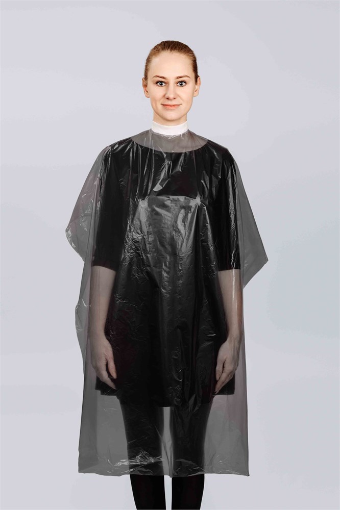 Одноразовые пеньюары из полиэтилена препятствуют попаданию воды, краски, лаков или других косметических веществ на одежду клиентов. Используются во время стрижек, окрашивания или химической завивки волос. Пеньюары стандарт относятся к базовому бюджетному варианту.