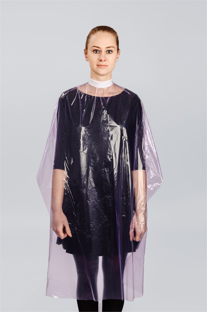 Одноразовые пеньюары из полиэтилена препятствуют попаданию воды, краски, лаков или других косметических веществ на одежду клиентов. Используются во время стрижек, окрашивания или химической завивки волос. Пеньюары стандарт относятся к базовому бюджетному варианту.