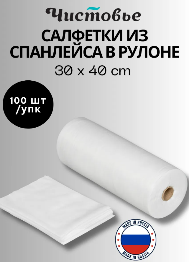 Чистовье Салфетки Классик из спанлейса в рулоне с перфорацией 30х40 см Белый, 100 шт/упк