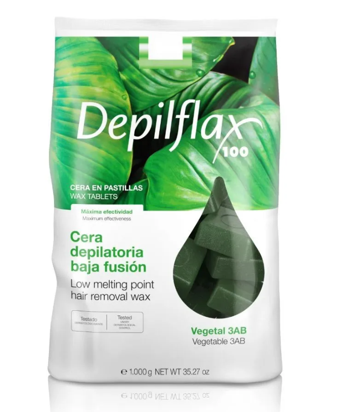 Прозрачный воск низкой температуры плавления Depilflax100 зеленый в брикетах подходит для всех типов кожи. Благодаря высокой адгезии позволяет с корнем удалять даже короткие волоски.