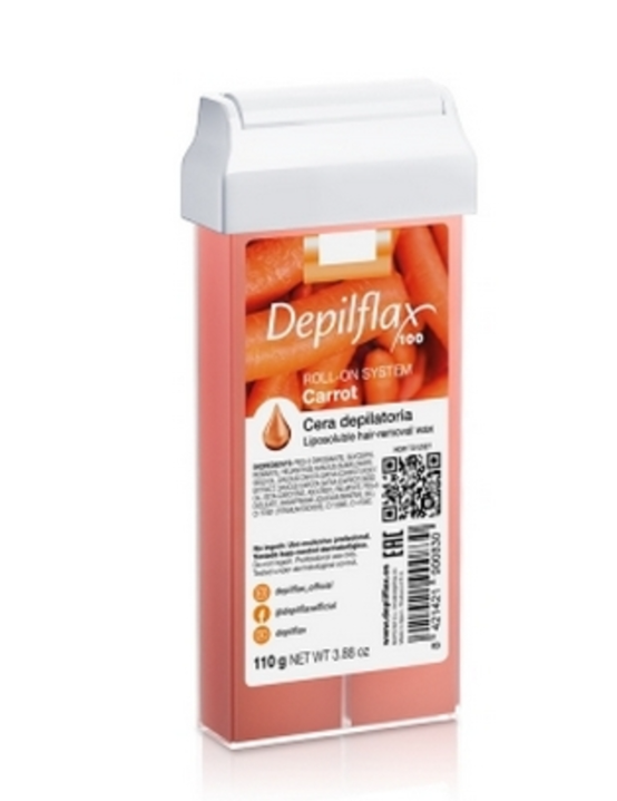 Воск средней плотности от бренда Depilflax100 - Морковь в картридже. Подходит для средних и жестких волос.