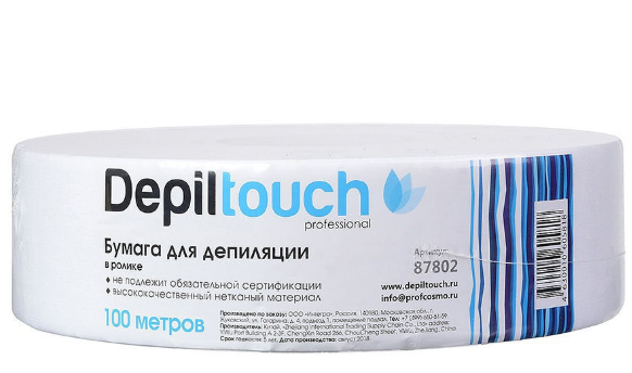 Бумага Depiltouch используются при депиляции тёплым воском и сахарной пастой.Имеет плотную структуру, не деформируется при использовании, что позволяет без следа удалять воск с поверхности кожи, а также делает процедуру депиляции комфортной и безболезненной.Ширина 7 см. В ролле 100 м.