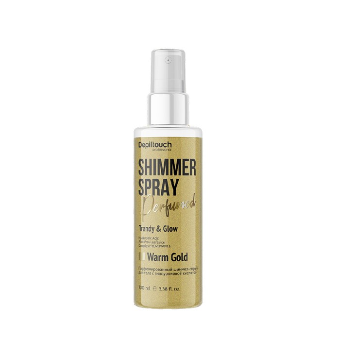 Depiltouch Парфюмированный шиммер-спрей для тела с гиалуроновой кислотой, теплое золото 100мл