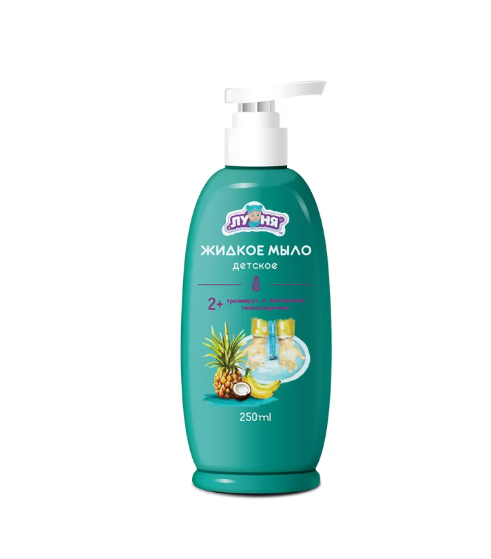 Гипоаллергенное детское мыло «Луня» с ароматом тропических фруктов бережно очищает кожу ребёнка, сохраняя естественную влажность и pH-баланс кожи. Содержит пантенол. Подходит для всей семьи. Флакон снабжён дозатором, который обеспечивает экономный расход и предотвращает случайное проливание.