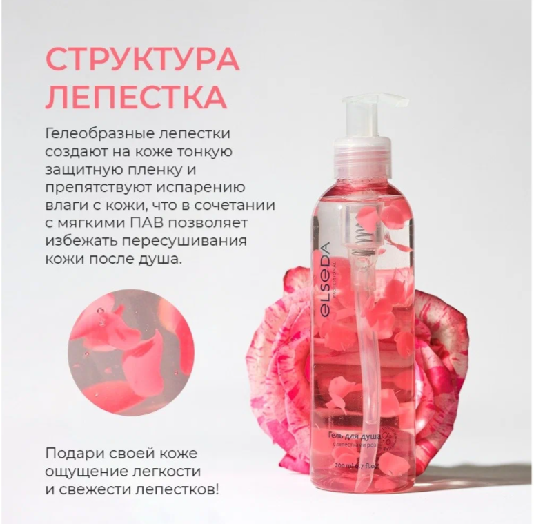 ELSEDA Professional Гель для душа с лепестками роз, 200 мл.