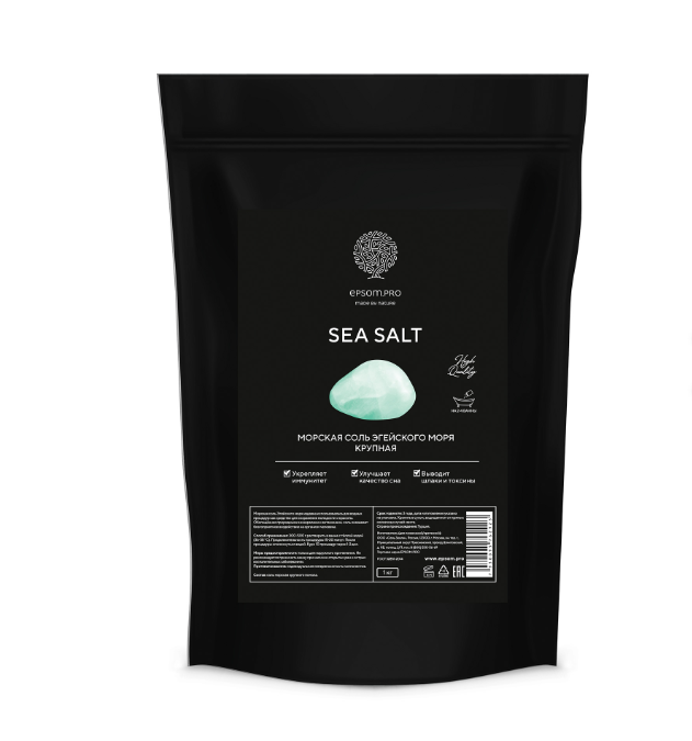 Морская соль ЭГЕЙСКОГО моря "SEA SALT" Epsom - 100 % натуральная кристаллическая соль Эгейского моря, в том виде, в каком она добыта из морской воды в месторождениях, расположенных в городе Измир, Турция. Mорская соль Эгейского моря издавна использовалась для водных процедур как средство для сохранения молодости и красоты. Обогащенная природными минералами и витаминами, соль оказывает благоприятное воздействие на организм человека: