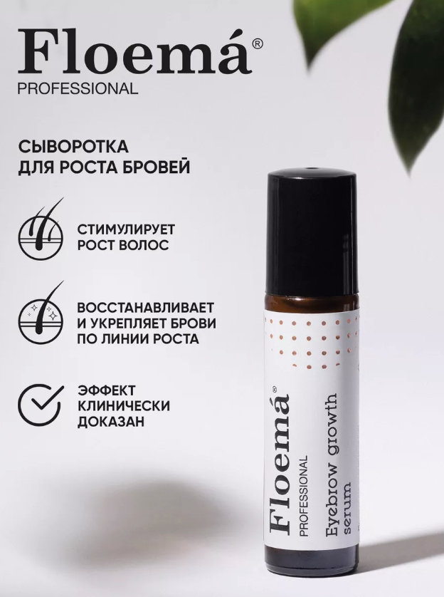 СЫВОРОТКА ДЛЯ РОСТА БРОВЕЙ, ДЛЯ КРАСИВЫХ БРОВЕЙ, ДЛЯ ИДЕАЛЬНОЙ ФОРМЫ БРОВЕЙ.Сыворотка FLOEMA - наиболее быстрый способ сделать свои брови красивыми и густыми без похода в салон красоты для девочек.НазначениеДля стимулирования роста бровей. ДействиеСтимулирует естественный рост волос в области бровей.Оптимизирует цикл роста бровей.Упаковка: Флакон с аппликатором 10 мл.Запах НейтральныйСпособ применения: Очистите кожу лица от макияжа и загрязнений; убедитесь, что брови полностью чистые, без остатков других средств. Нанесите средство по линии роста бровей. Используйте сыворотку один раз в день. Минимальный рекомендованный курс шесть недель.Состав: Aqua, Butylene Glycol, Dextran, Acetyl Tetrapeptide-3, Trifolium Pratense (Clover) Flower Extract, Glycerin, Epilobium Angustifolium Flower/Leaf/Stem Extract, Xanthan Gum, Lecithin, Sclerotium Gum, Pullulan, Sodium Benzoate, Potassium Sorbate, Pentylene Glycol, Isochrysis Galbana Extract, Panthenol, Citric Acid, Disodium EDTA.Срок годности: 30 месяцев