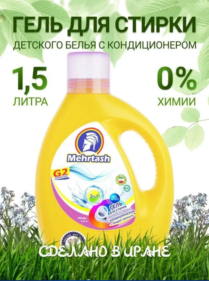 Концентрированный гипоаллергенный гель для стирки с кондиционером 2 в 1 Мерташ произведен в Иране из 100% натуральных ингредиентов, просто смотрите состав. Благодаря использованию нанотехнологий в производстве геля, наш продукт удаляет загрязнения и свежие пятна с волокон ткани даже в холодной воде и при коротких циклах стирки. Средство полностью выполаскивается из тканей белья, не содержит никакой химии, только натуральные ингредиенты. Благодаря натуральным компонентам и высокотехнологичному производству наш продукт обладает антибактериальными, антистатическими и гипоаллергенными свойствами, что делает его идеальным выбором для заботы о вашей коже. Мы хоть и относимся к категории "бытовая химия", но в наших продукта никакой химии нет. И мы этим действительно гордимся.