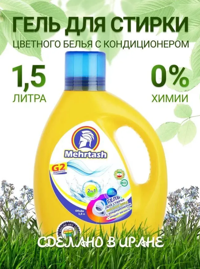 Концентрированный гипоаллергенный гель для стирки с кондиционером 2 в 1 Мерташ произведен в Иране из 100% натуральных ингредиентов, просто смотрите состав. Благодаря использованию нанотехнологий в производстве геля, наш продукт удаляет загрязнения и свежие пятна с волокон ткани даже в холодной воде и при коротких циклах стирки. Средство полностью выполаскивается из тканей белья, не содержит никакой химии, только натуральные ингредиенты. Благодаря натуральным компонентам и высокотехнологичному производству наш продукт обладает антибактериальными, антистатическими и гипоаллергенными свойствами, что делает его идеальным выбором для заботы о вашей коже. Мы хоть и относимся к категории "бытовая химия", но в наших продукта никакой химии нет. И мы этим действительно гордимся.