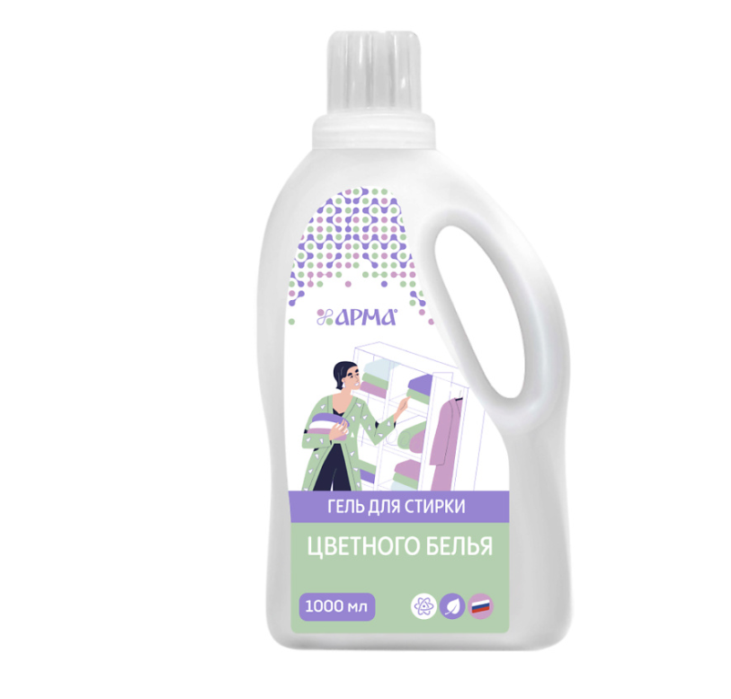 Попробуйте все гели для стирки Арма для цветных вещей и универсальный в объеме 1 литр и 2 литра. Такая бытовая химия незаменима в каждой семье как товары для дома.