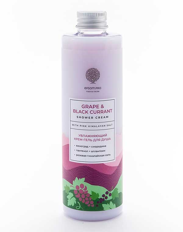 Нежная кремовая текстура геля для душа с ароматами черной смородины и темного винограда, с розовой гималайской солью в составе. Окутывая кремовой пеной, бережно ухаживает за кожей: