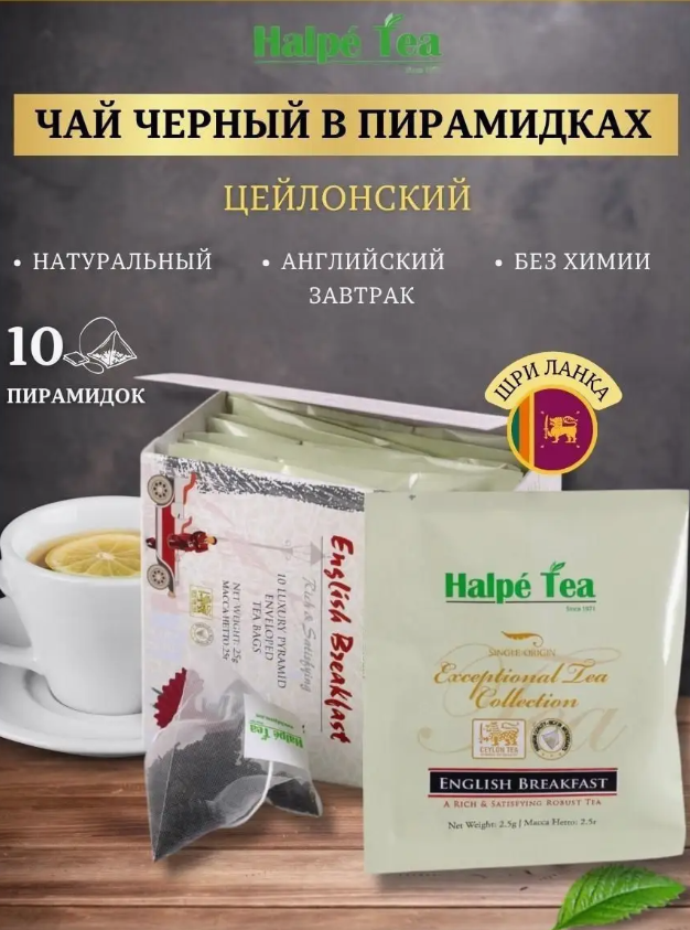 HALPE TEA,Премиальный черный чай «Английский завтрак» ENGLISH BREAKFAST (2.5 гр. х10 пирамидок)