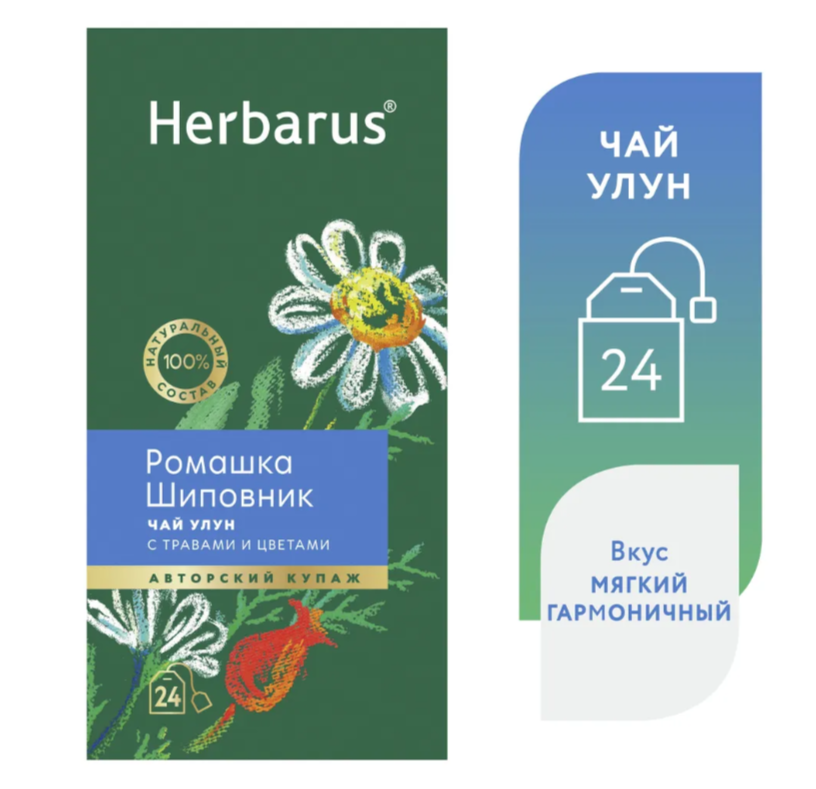 Herbarus "Ромашка Шиповник", Чай улун с добавками в пакетиках 24 шт