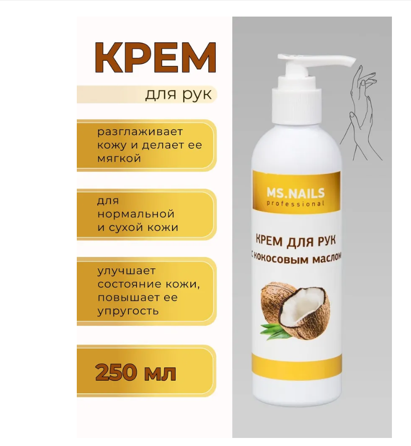 Крем для рук с кокосовым маслом MS NAILS, 250 мл