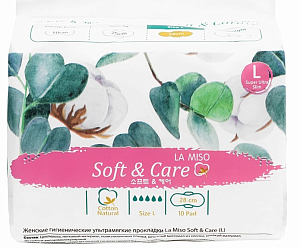 La Miso Женские гигиенические ультрамягкие прокладки Soft & Care (L) 10шт