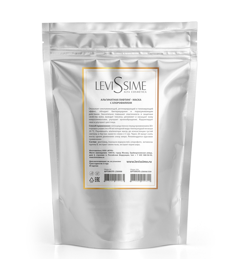 Levissime Альгинатная лифтинг-маска с хлорофиллом Chlorophyll Algae Mask ,350 гр.