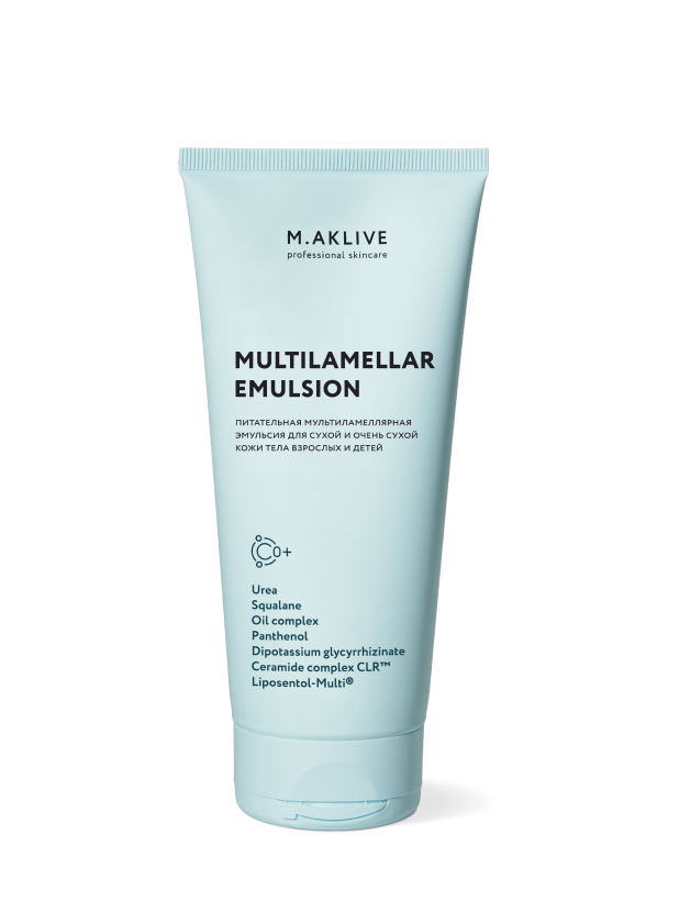 Регулярное применение мультиламеллярной эмульсии в качестве основного уходового средства значительно улучшает состояние кожи при различных формах дерматитов, себореи, псориаза, уменьшает дискомфорт и сухость кожи тела детей и взрослых.