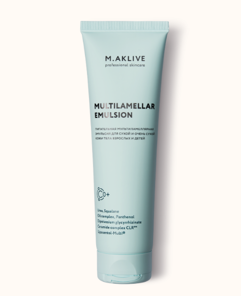 Регулярное применение мультиламеллярной эмульсии в качестве основного уходового средства значительно улучшает состояние кожи при различных формах дерматитов, себореи, псориаза, уменьшает дискомфорт и сухость кожи тела детей и взрослых.
