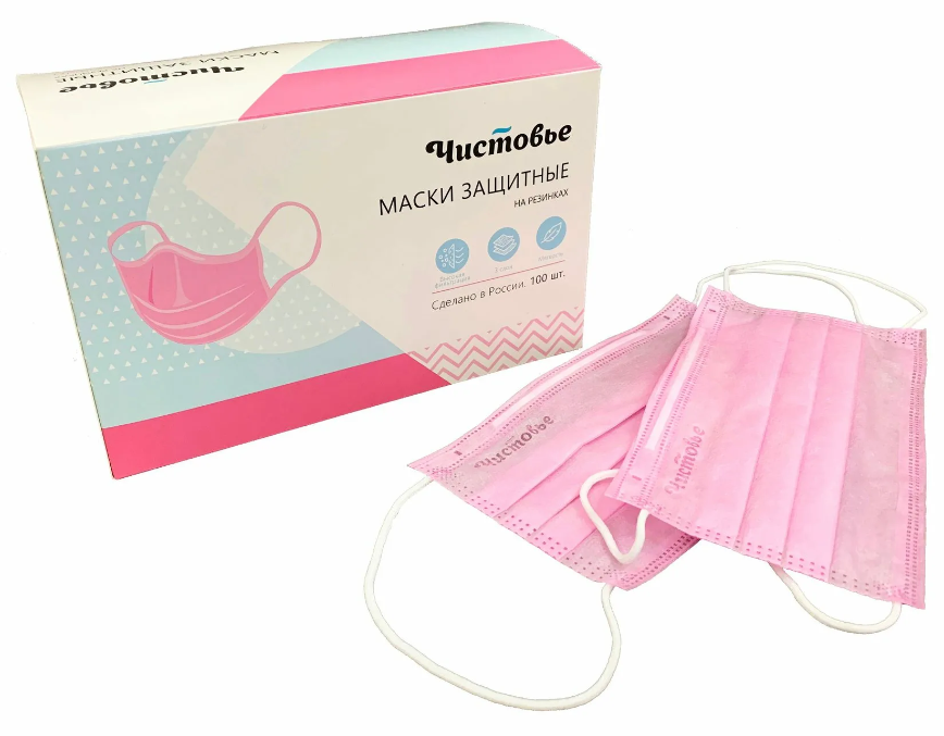 Маска медицинская нестерильная, одноразовая “ЧИСТОВЬЕ” РОЗОВАЯ 100 шт/упк