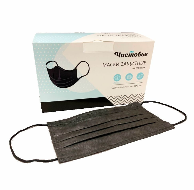 Маска медицинская одноразовая “ЧИСТОВЬЕ” (трехслойная, на резинках, черная) 100 шт/упак