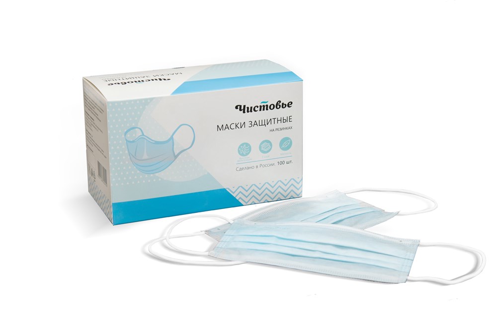 Маска медицинская одноразовая “ЧИСТОВЬЕ” (трехслойная, на резинках, голубая) 100 шт/упак