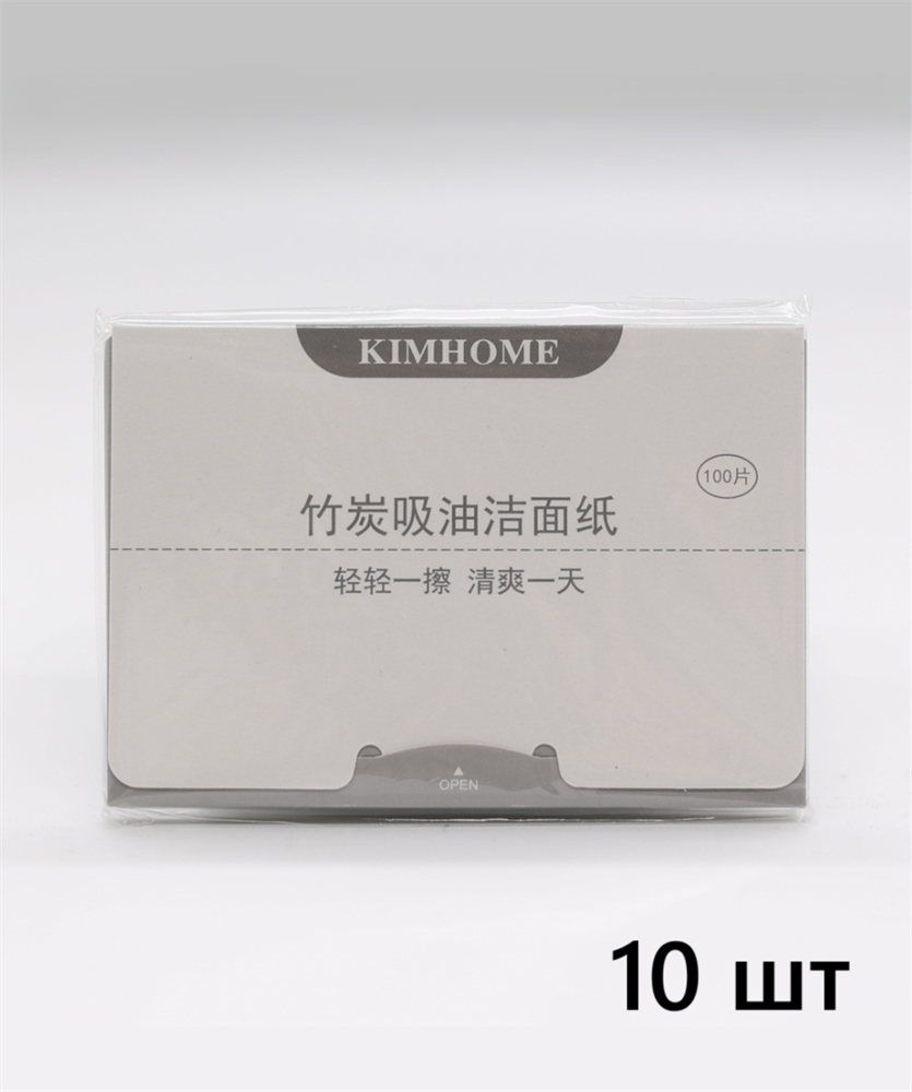 Матирующие салфетки для лица KIMHOME с бамбуковым углем, 10 х 100 листов.