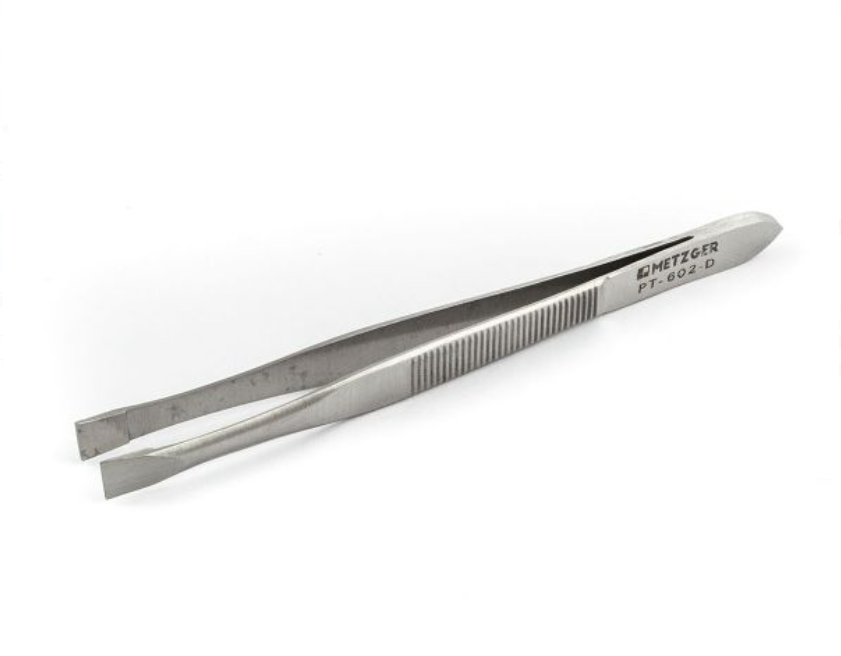 Пинцет предназначен для удаления волос и выщипывания бровей. Прямые кончики пинцета обеспечивают идеальный захват тончайших волосков и быстро избавляет от них. Пинцет удобен и долговечен в использовании. Это обеспечивается конструкцией и качественным материалом, которые позволяют работать ним с легкостью и комфортом. Инструментальная сталь, использующаяся для изготовления косметического инструмента, обеспечивает ему прочность, выносливость и долговечность. Кроме того, не вызывает аллергических реакций на коже. При нажатии рабочие кромки не прогибаются за счет оптимальной толщины стали. Идеальная шлифовка и полировка кромок гарантируют инструменту долговечность, а мастеру – комфорт и легкость в работе с ним. Только компания Metzger гарантирует длительную и эффективную работу инструменту. При правильном использовании, дезинфицировании и хранении инструмент сохраняет отличную работоспособность долгое время. Обладает высокой прочностью и корозостойкостью. Материал Для изготовления инструмента берется исключительно высококачественная нержавеющая инструментальная сталь - Кобальт, прошедшая все этапы строгого контроля качества. Поэтому пинцет обладает наибольшей прочностью и долговечностью. Уход Пинцет требует регулярного и правильного ухода - это позволит продлить срок службы инструмента: После использования рекомендуется тщательно очистить инструмент от пыли и волосков; Очищайте инструмент с помощью дезинфицирующего раствора или теплой воды; Обрабатывайте инструмент сертифицированной дезинфицирующей жидкостью в течение срока, указанного в инструкции; Смывайте дезинфицирующую жидкость чистой водой и тщательно просушивайте инструмент. Для транспортировки и хранения своих профессиональных инструментов, бренд Metzger создал чехлы и подставки, они сохраняют работоспособность пинцетов как можно дольше в надлежащем виде, что значительно упрощает работу мастеру. Покрытие D - матовое Форма кромок Прямые.