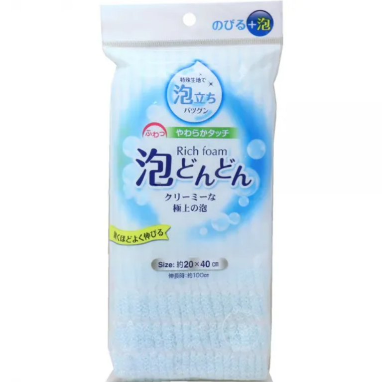 Мочалка бережно очищает кожу и оказывает массирующее действие. Создает большой объем пены, позволяя экономично расходовать мыло или гель для душа. Мочалка растягивается до 100 см.