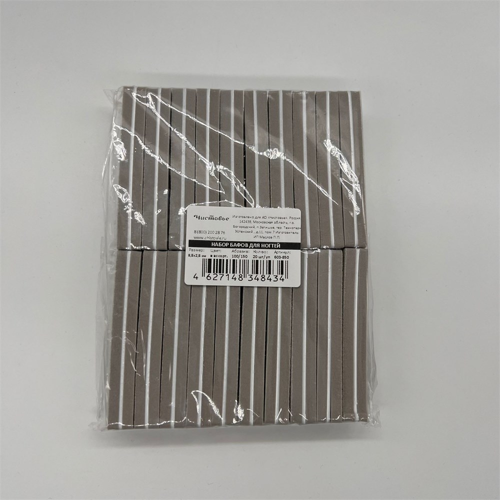 Набор бафов для ногтей 8,5x2,5 см 100/150 20 шт/упк Чистовье