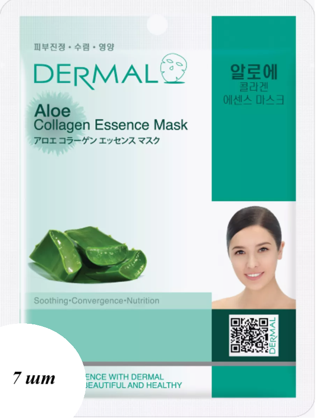 Маска для лица тканевая КОЛЛАГЕН и АЛОЭ Aloe Collagen Essence Mask Soothing, 23 мл Dermal Aloe Collagen Essence Mask — тканевая маска с экстрактом алоэ, предназначенная для глубокого очищения и увлажнения кожи, устранения воспалений и раздражений. Содержит морской коллаген, поэтому подходит для антивозрастного ухода. Эффект от применения заметен сразу, однако в полной мере проявляется на следующий день: кожа становится подтянутой и гладкой, цвет лица — сияющим и ровным, акне и постакне — менее заметными. Маску можно использовать в качестве «экстренной помощи» при солнечных ожогах — состав, которым пропитана основа, интенсивно охлаждает и восстанавливает поврежденные участки кожи. Перед использованием маски для лечения ожогов или в жаркое время года на несколько минут положите упаковку в холодильник. Алоэ вера, содержащий более 160 полезных веществ, — основной действующий компонент маски