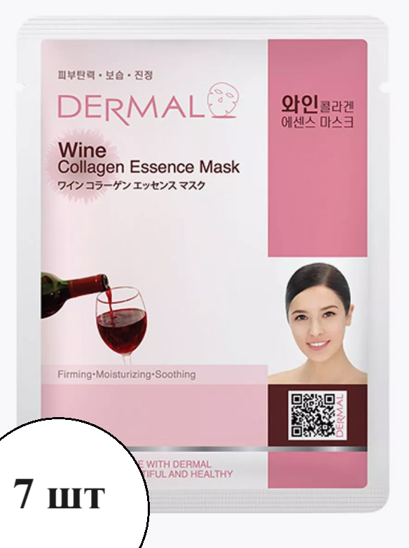 Тканевая маска DERMAL Wine Collagen Essence Mask с морским коллагеном и экстрактом вина предназначена для ухода за сухой кожей, оказывает заметный увлажняющий, антивозрастной и тонизирующий эффект.