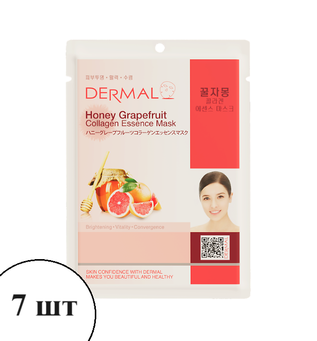 Набор DERMAL Тканевая маска с экстрактом меда, грейпфрута и коллагеном 7 х 23 г