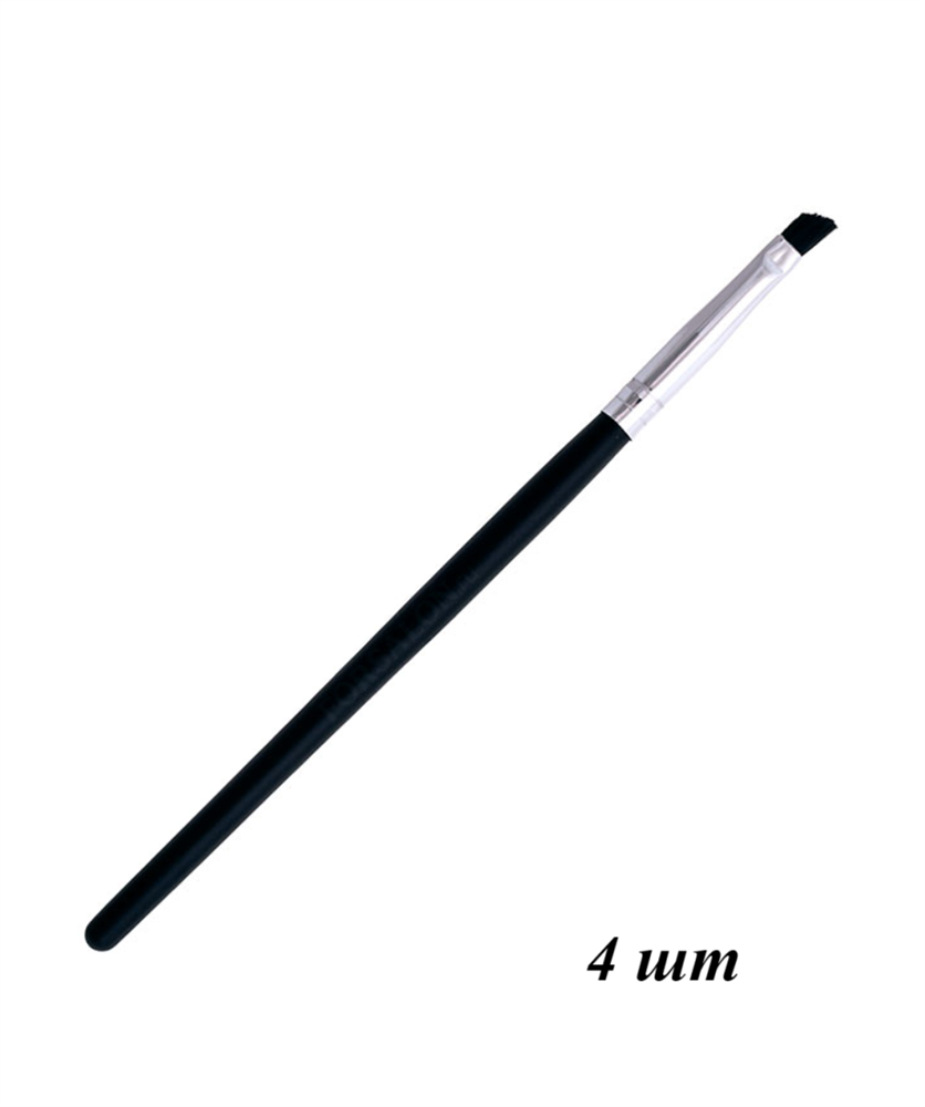 Скошенная кисточка для окрашивания бровей и ресниц с удобной черной пластиковой ручкой.