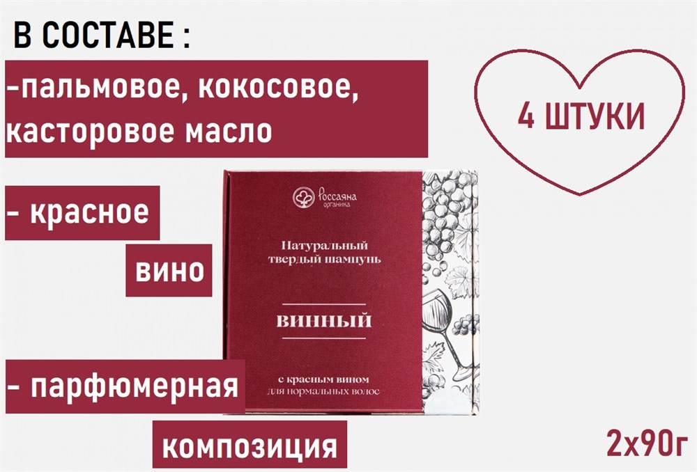Набор Россаяна Шампунь твердый Винный (для нормальных волос) 4 шт
