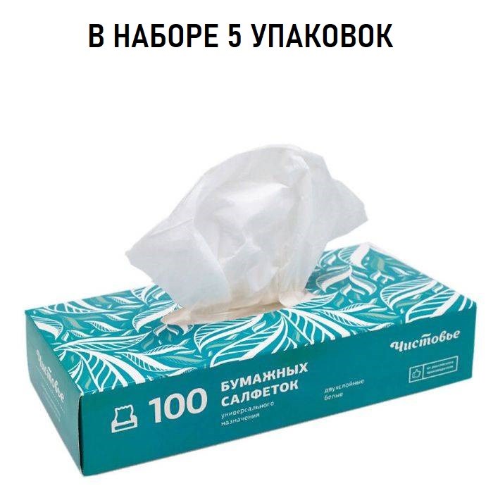 Набор Салфетки бумажные 2-слойные вытяжные Чистовье 100 шт/упк 5 уп