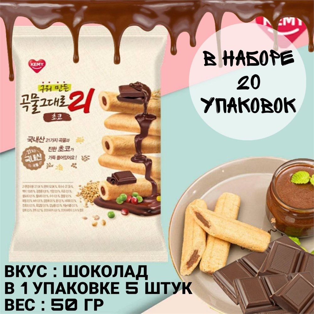 Набор Трубочки 21 злак с начинкой Шоколад 20х50гр KEMY / Premium Baked Crispy Roll 21