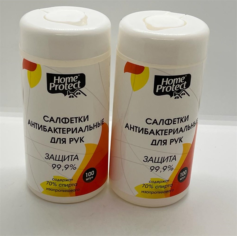 Набор Влажные салфетки Home Protect антибактериальные в тубе, 100 шт - 2 упаковки