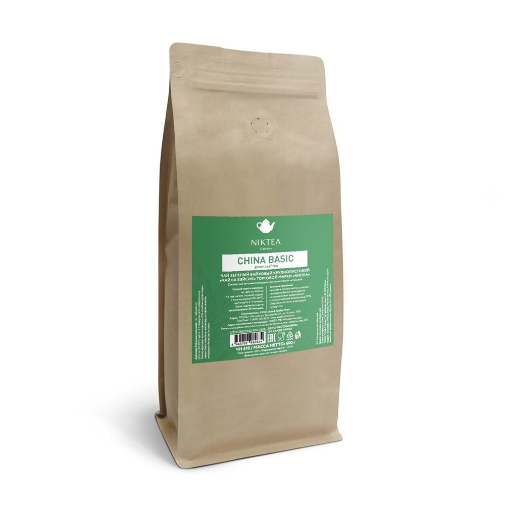 Niktea Чай CHINA Basic ЧАЙНА БЭЙСИК зеленый байховый крупнолистовой, 600 гр.