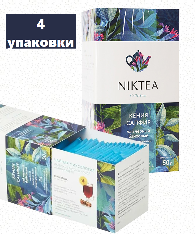 Niktea Kenya Sapphire Кения Сапфир, черный в пакетиках, 2гр x 25 шт. 4 упаковки